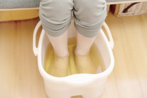 よもぎを煮出した足浴。短時間で温泉に入ったみたいに温まります。